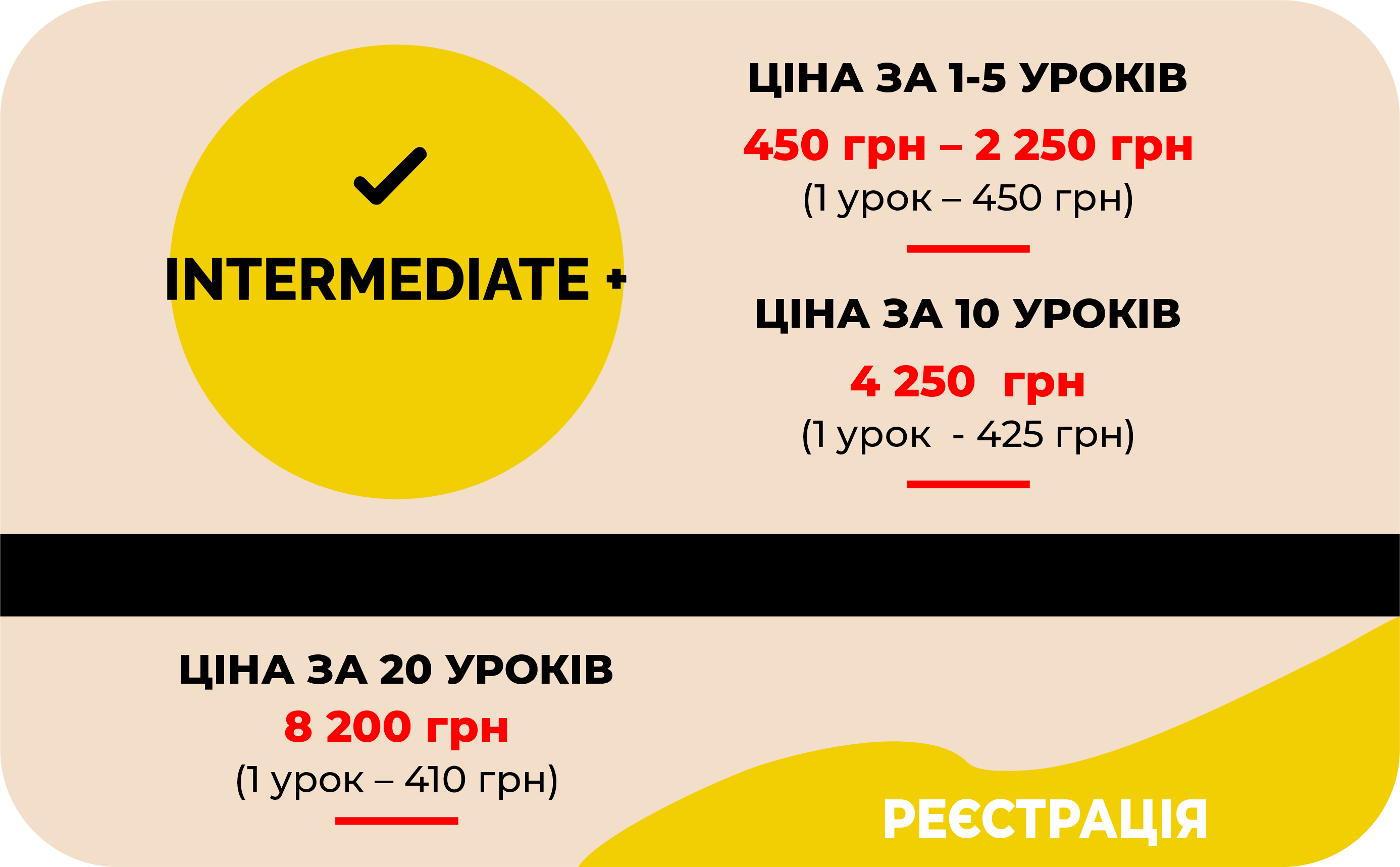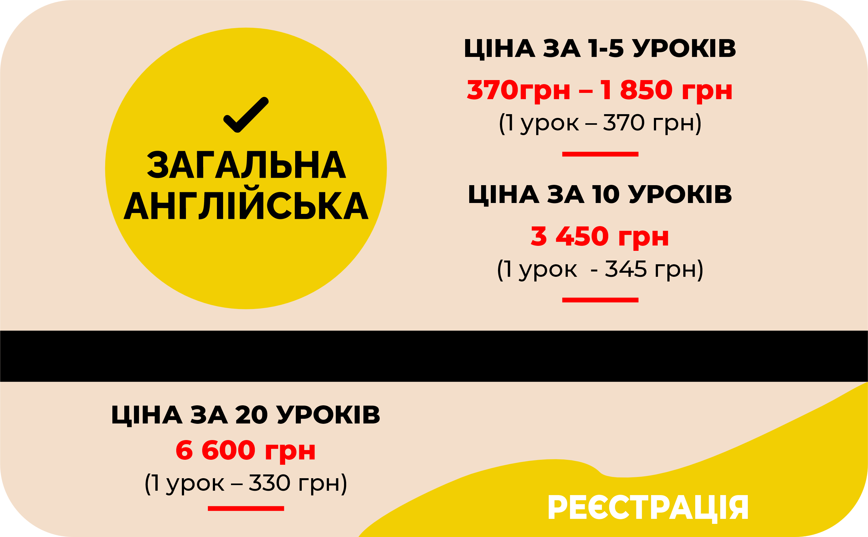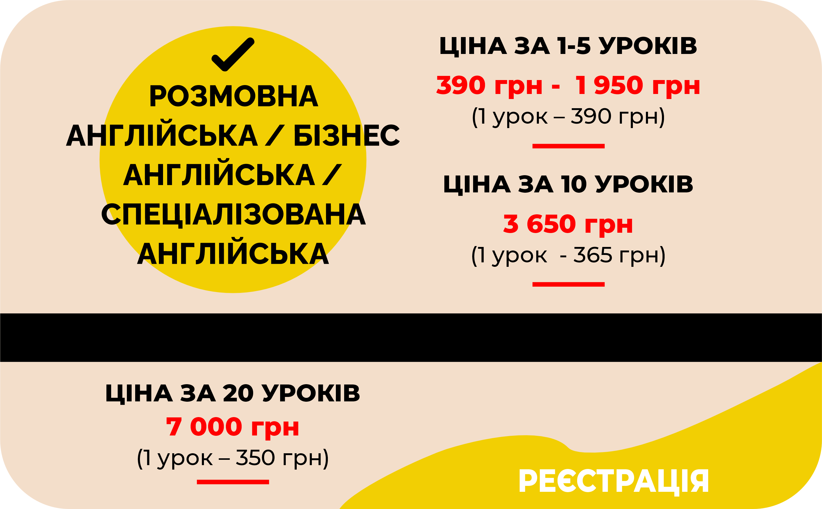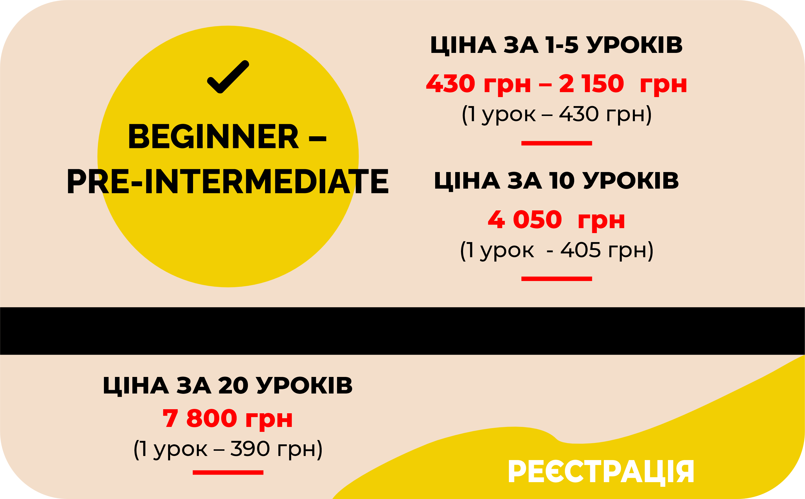 Тривалість уроку – 60 хв Ви можете сплатити за 1-5 уроків, або придбати пакет зі знижкою на 10 або 20 занять